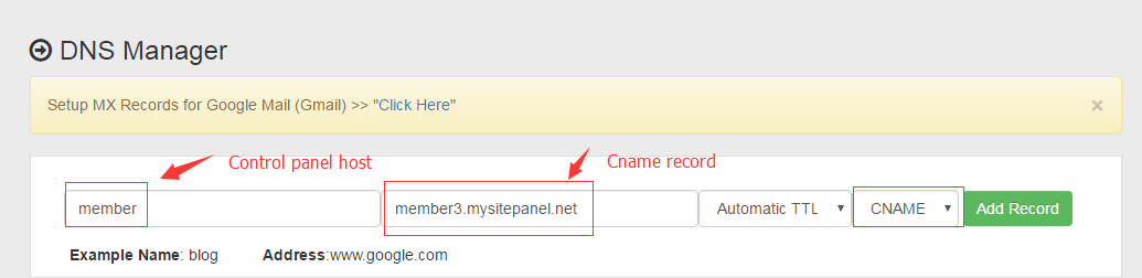 2. Set the Cname record