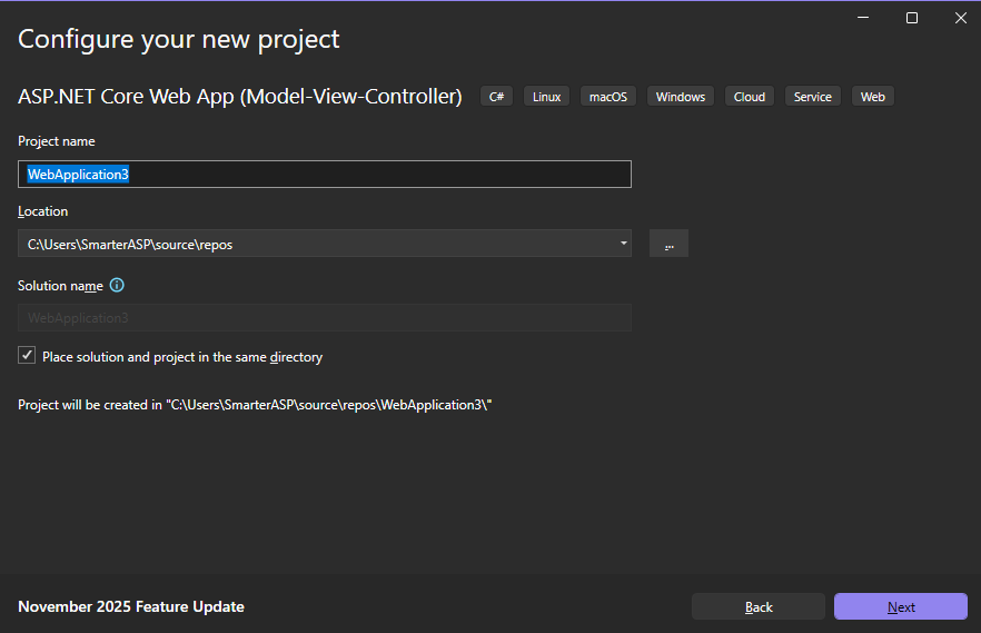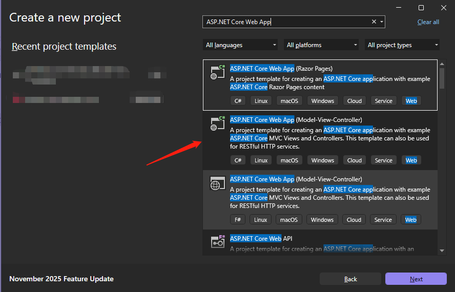 3) In ‘Create a new project' window, select ASP.NET Core Web App or search it manually, then click on ‘Next’ button.