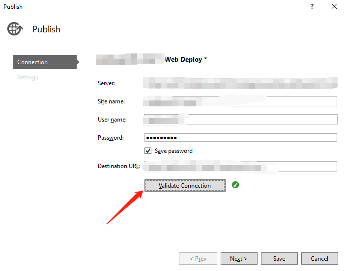 8) Edit this profile and go to connection section, enter your web deployment password and validate the connection.