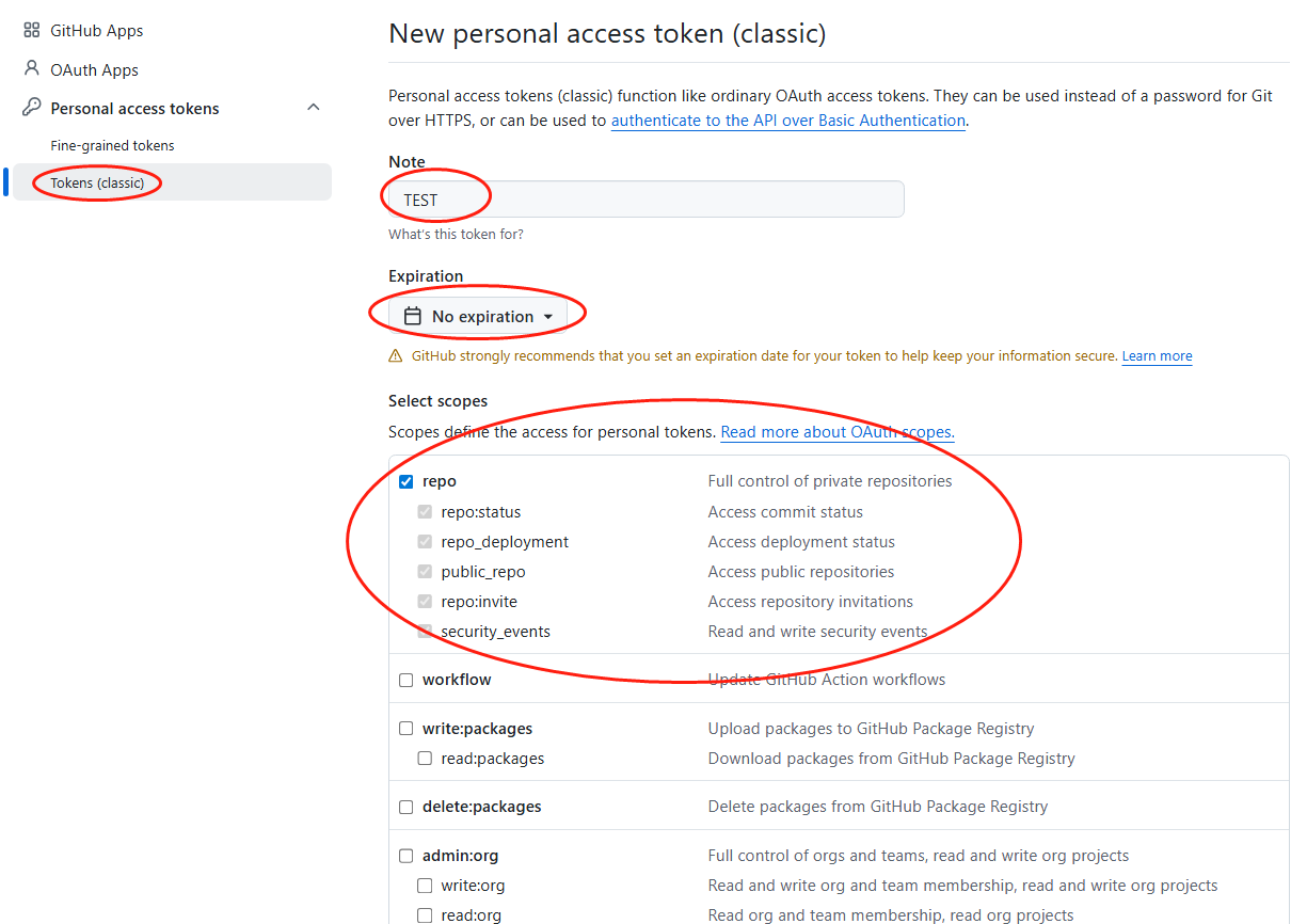 4. Click Personal Access Tokens in the left menu and select Tokens (Classic).