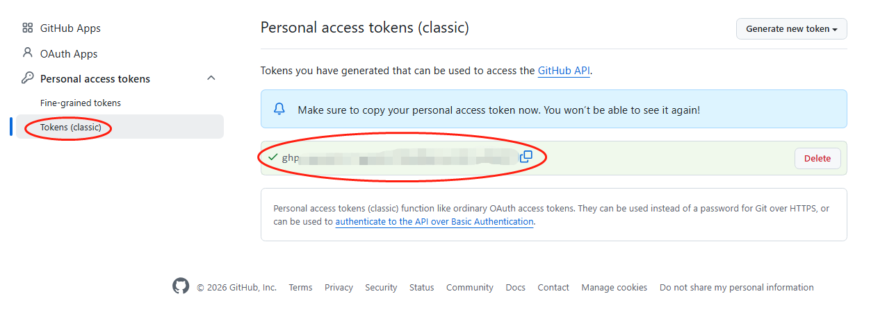 5. Click Generate new token on top right menu and select Generate new token (Classic).