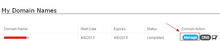 2. Click 'Manage' button beside the domain